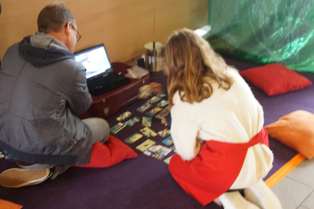 Un espace en accès libre où les visiteurs manipulent des installations interactives et pratiquent des jeux spécialement créés pour l’Oeil Vagabond, conçu·es grâce à notre savoir-faire en matière de pédagogie et de médiation culturelle.